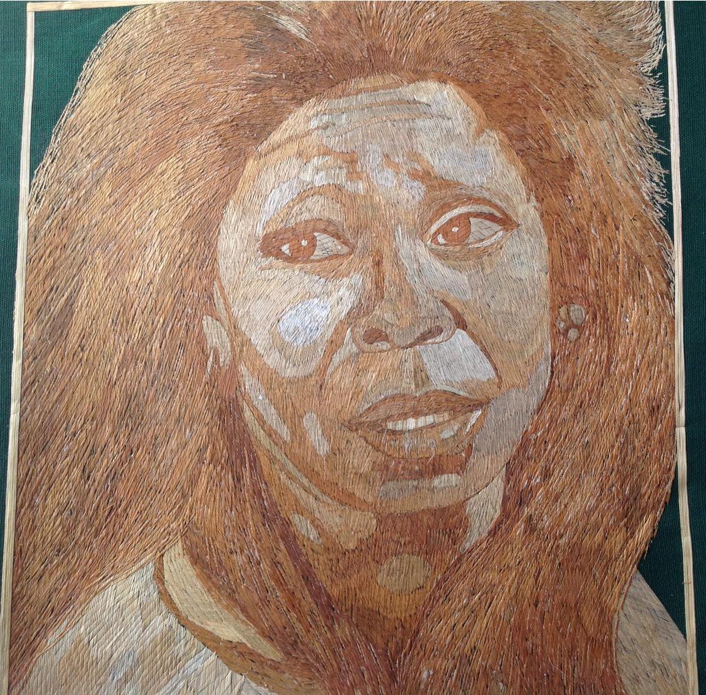 Whoppie Goldberg Leaf art portrait, BELIEVE it is handmade with leaves?